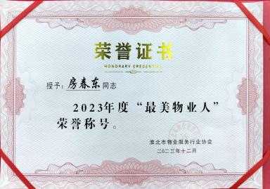 29 12月2023 了解詳情 通皓物業(yè)項(xiàng)目經(jīng)理榮獲"最美物業(yè)人"榮譽(yù)稱號(hào) 近日,在淮北市物業(yè)協(xié)會(huì)一年一度的“最美物業(yè)人”選舉中,通皓物業(yè)東湖家園項(xiàng)目經(jīng)理房春東脫穎而出,榮獲“最美物業(yè)人”榮譽(yù)稱號(hào)。